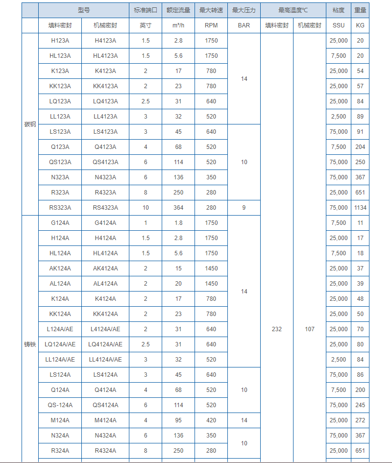 材质:铸铁、球墨铸铁、碳纲、不锈钢、合金C或合金20和其它、加硬材料