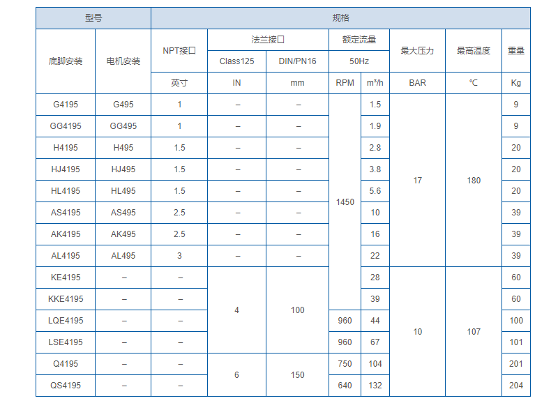 特殊液体泵 – 液氨:用于稀薄、挥发性液体的重载泵,专为处理液氨和其他高蒸汽液体而设计,用于制冷和输送。低速运转,将闪蒸减到最少。