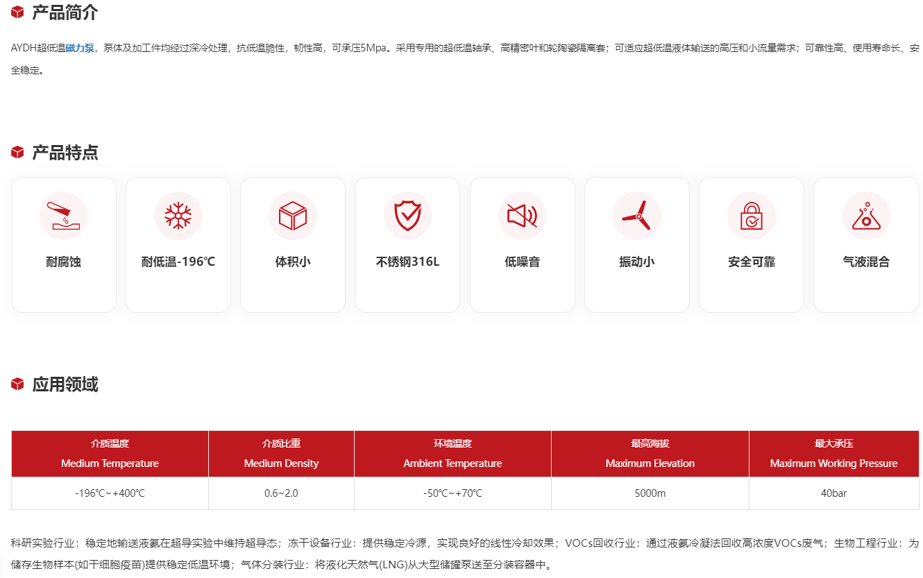 奥兰克磁力泵AYDH系列不锈钢超低温泵