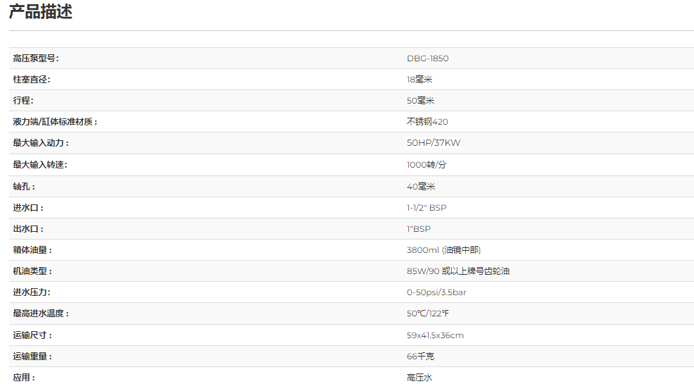 工业级往复式高压柱塞泵DBG-1850