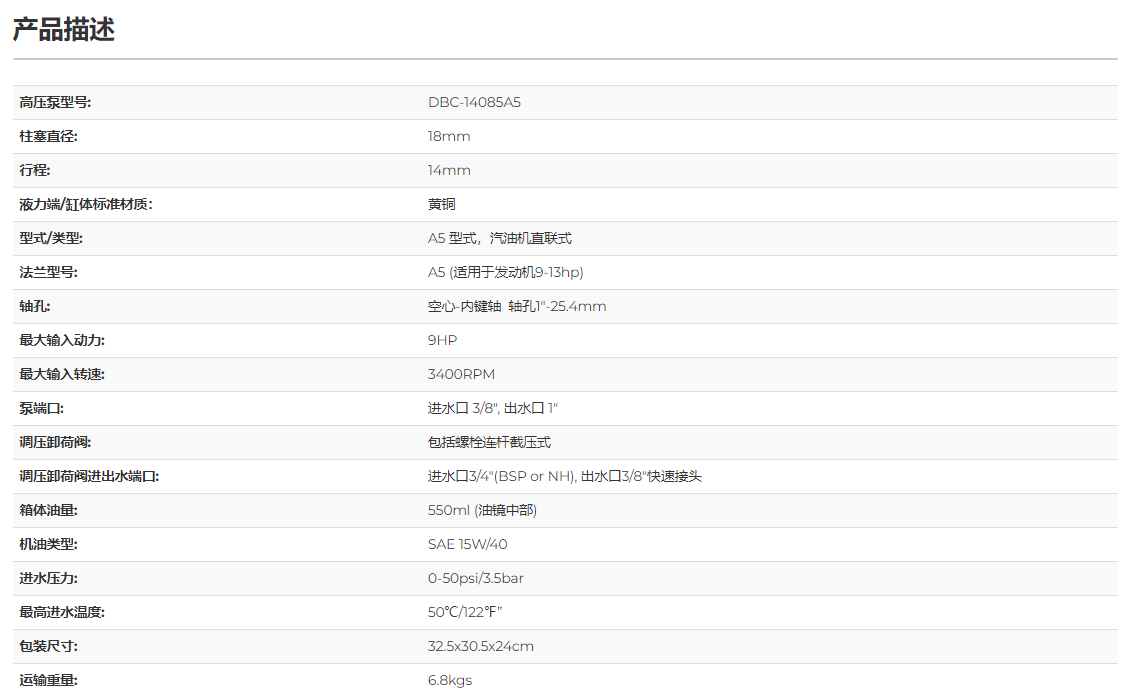 商用级曲轴式高压柱塞泵DBC-14085A5