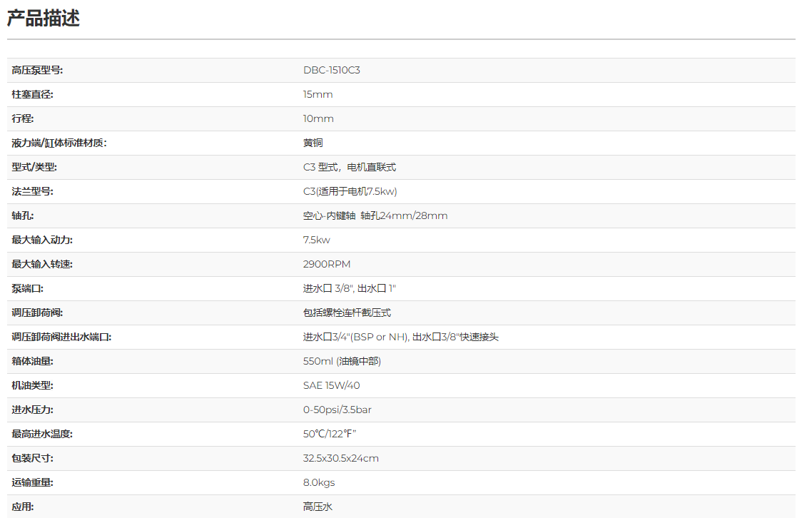 商用级曲轴式高压柱塞泵DBC-1510C3