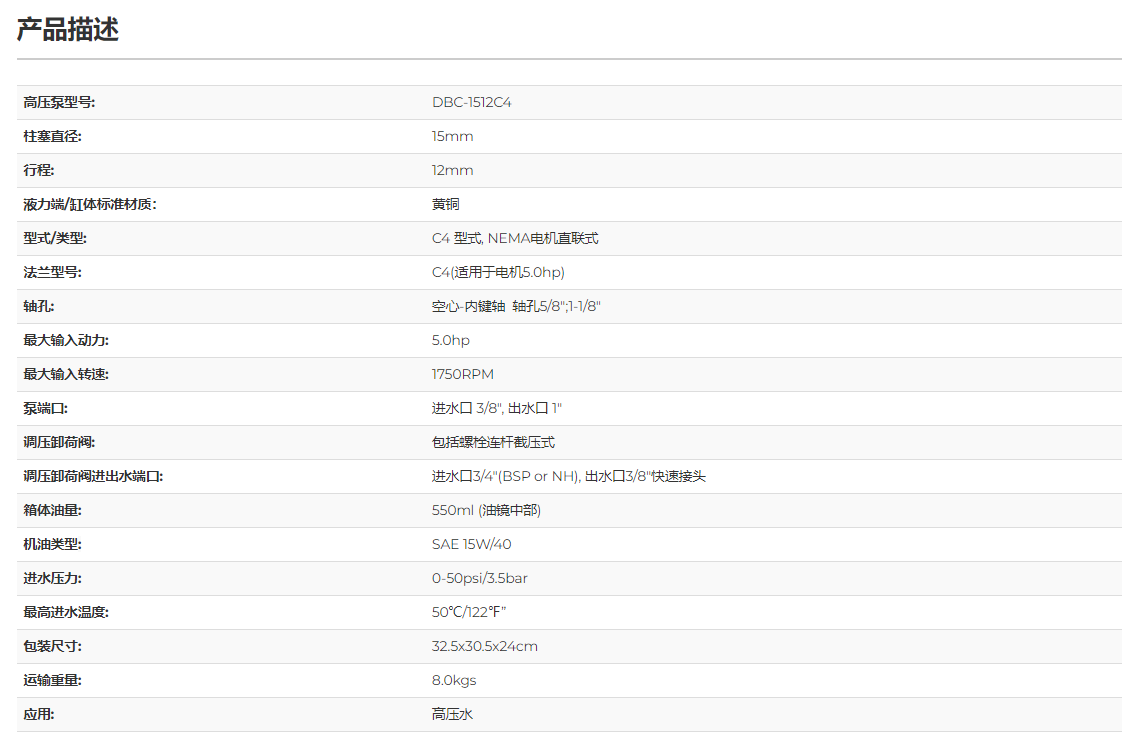 商用级曲轴式高压柱塞泵DBC-1512C4