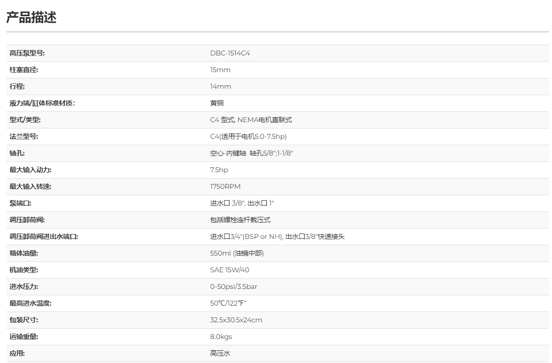商用级曲轴式高压柱塞泵DBC-1514C4