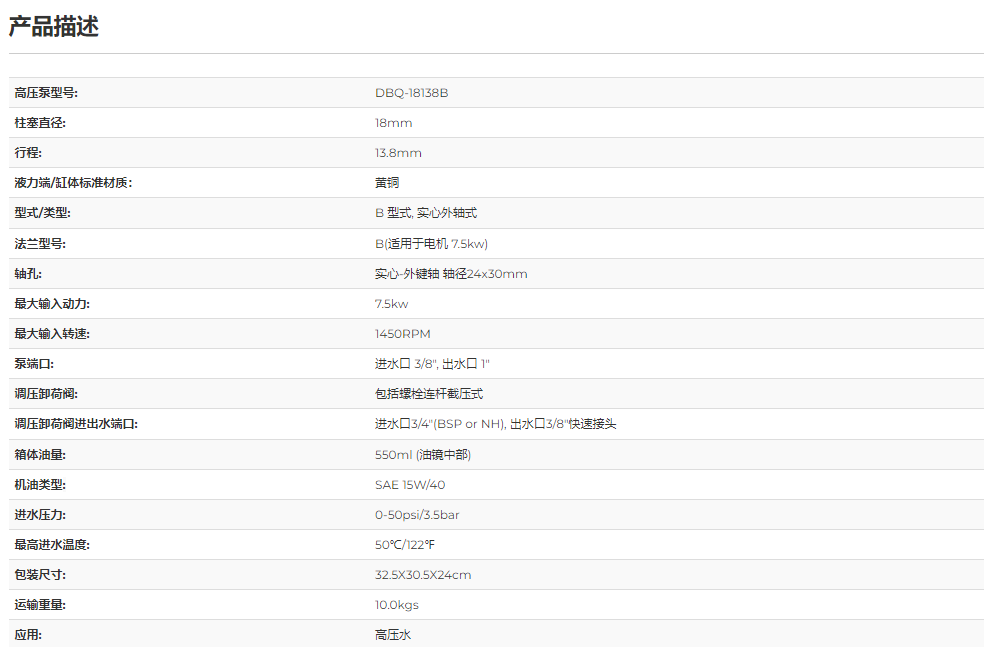 商用级曲轴式高压柱塞泵DBQ-18138B