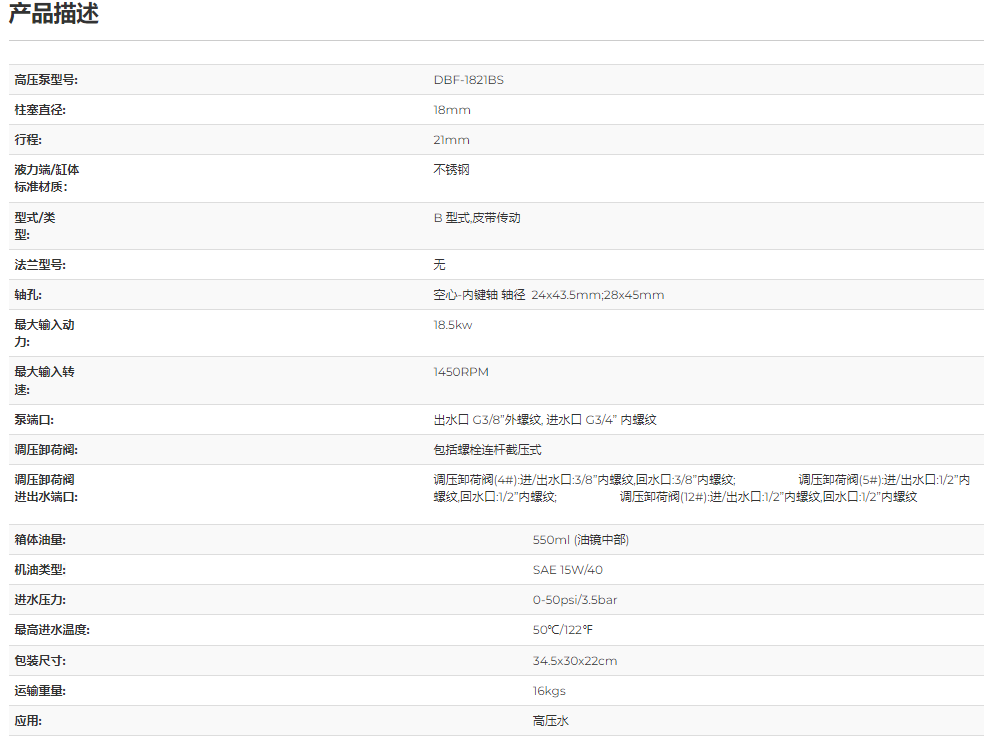 商用级曲轴式高压柱塞泵DBF-1821BS