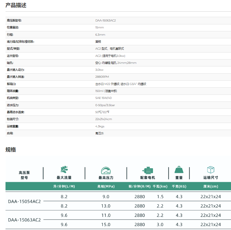 商用级曲轴式高压柱塞泵DAA-15063AC2