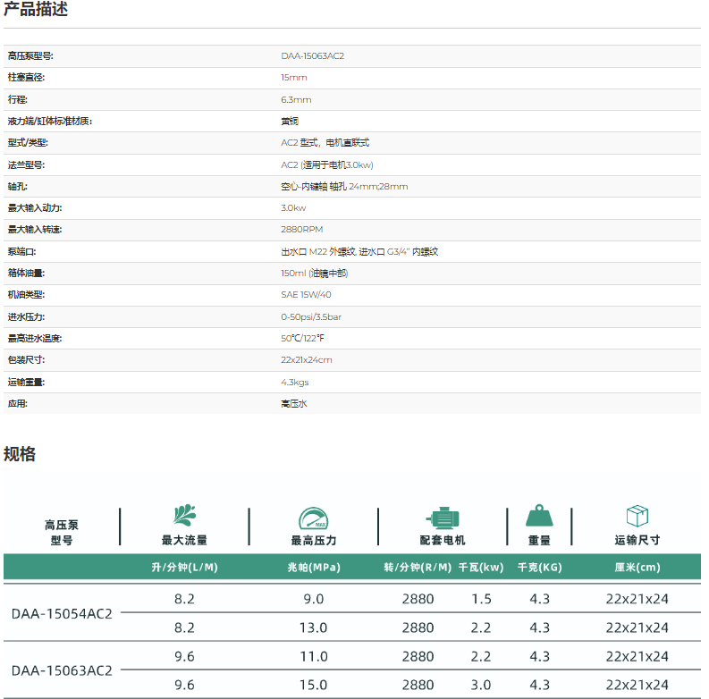 商用级曲轴式高压柱塞泵DAA-15063AC2