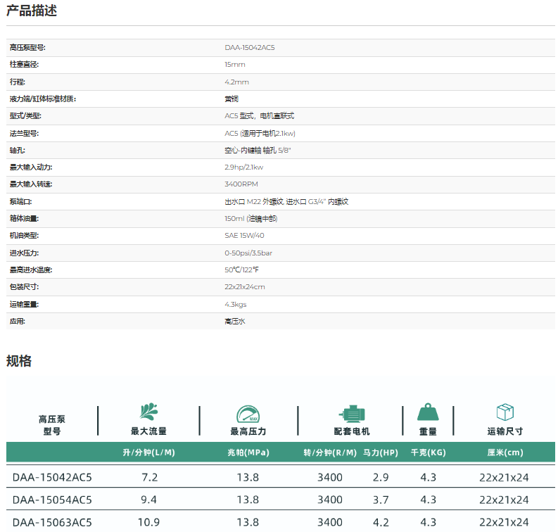 商用级曲轴式高压柱塞泵DAA-15042AC5