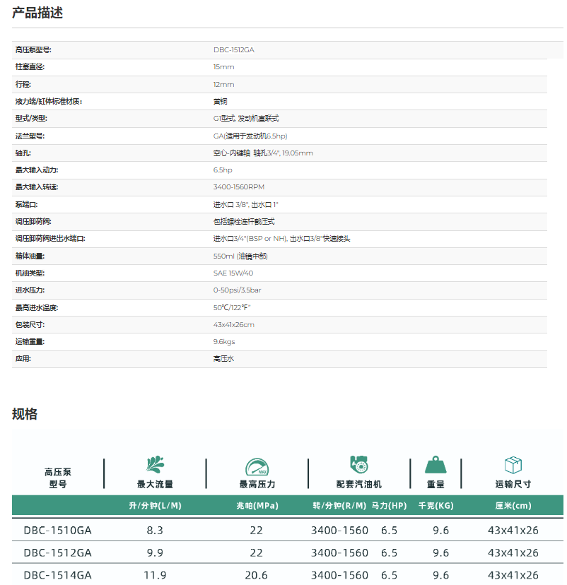 商用级曲轴式高压柱塞泵DBC-1512GA