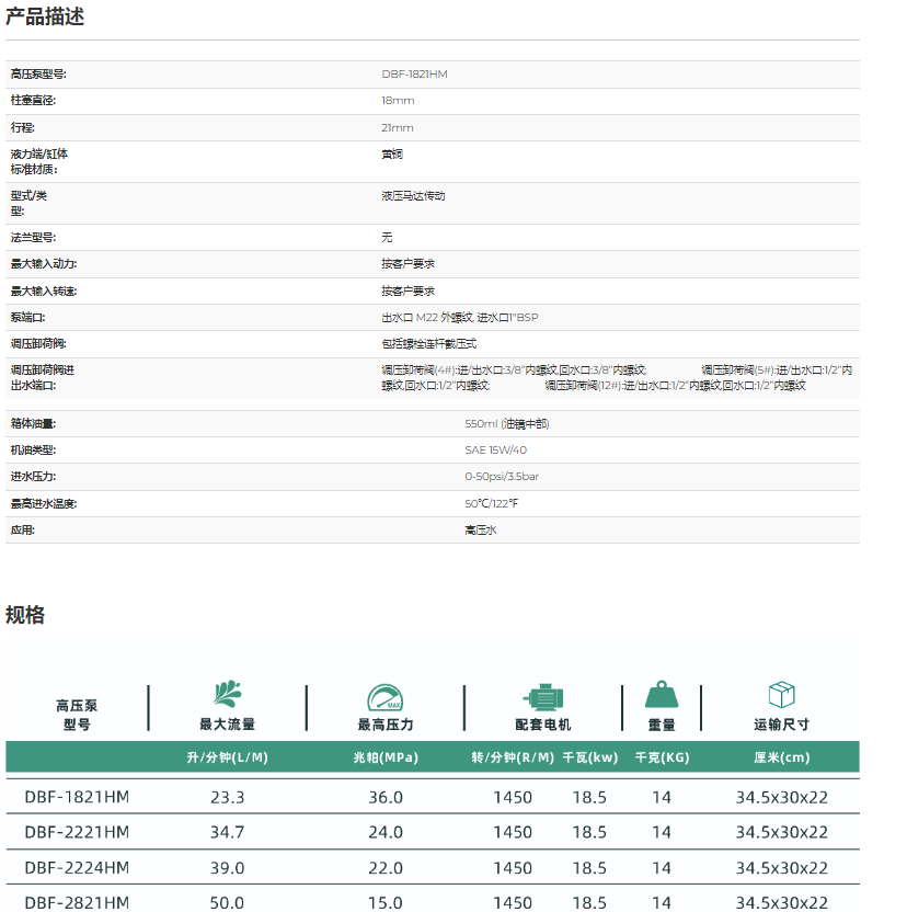 商用级曲轴式高压柱塞泵DBF-1821HM