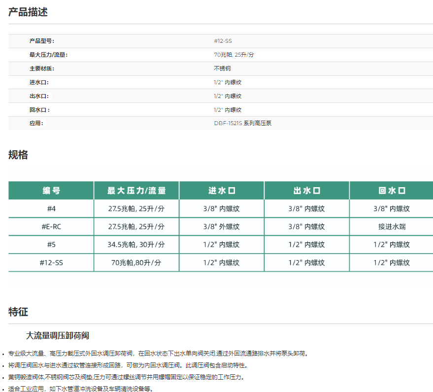 最大压力/流量:70兆帕, 25升/分