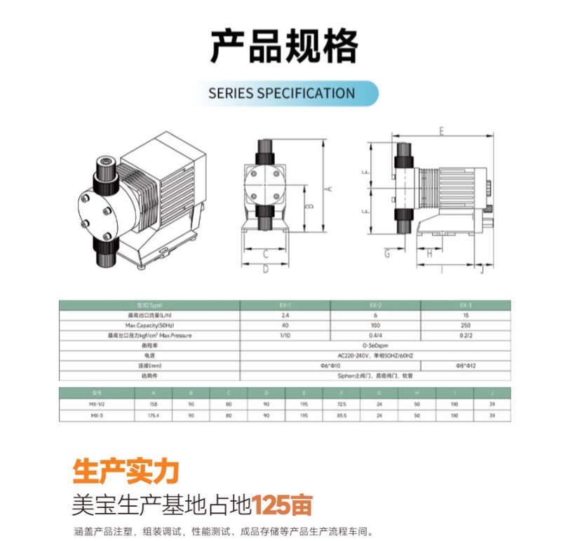 美宝次氯酸计量加药泵MX系列小流量酸碱药水加药泵防腐化工计量泵