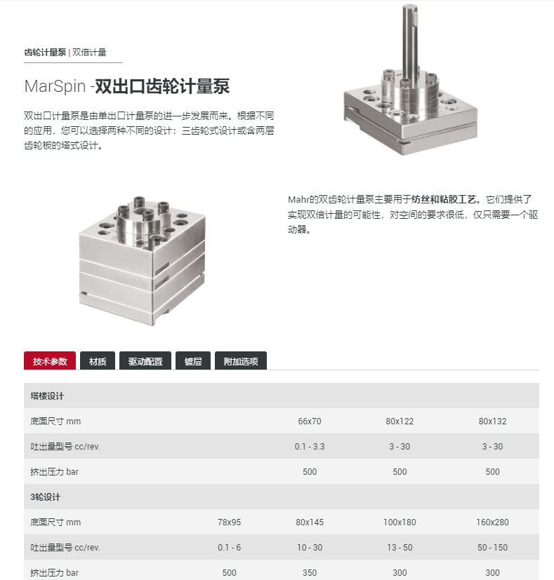 Mahr的双齿轮计量泵主要用于纺丝和粘胶工艺。它们提供了实现双倍计量的可能性,对空间的要求很低,仅只需要一个驱动器。