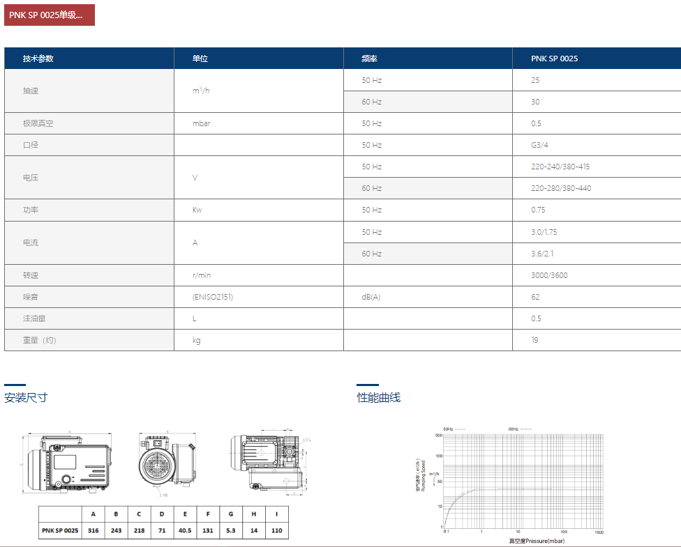 抽速 (50/60Hz): 25m³/h/30m³/h