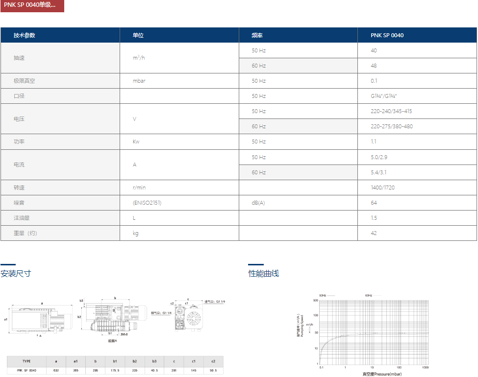 抽速 (50/60Hz): 40m³/h/48m³/h