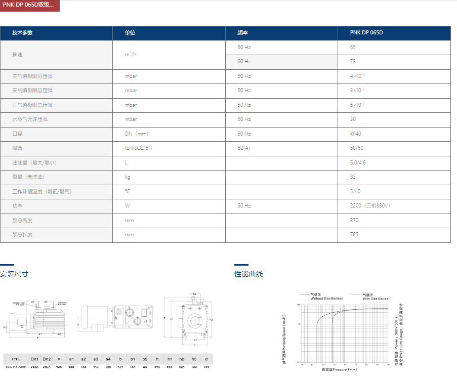 抽速 (50/60Hz): 65m³/h/78m³/h