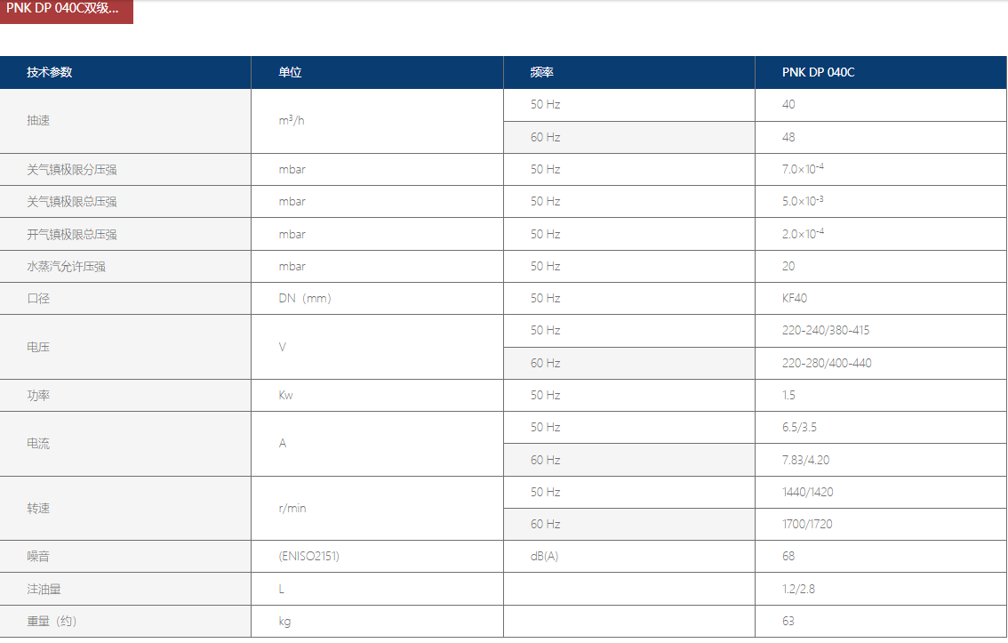 抽速 (50/60Hz): 40m³/h/48m³/h