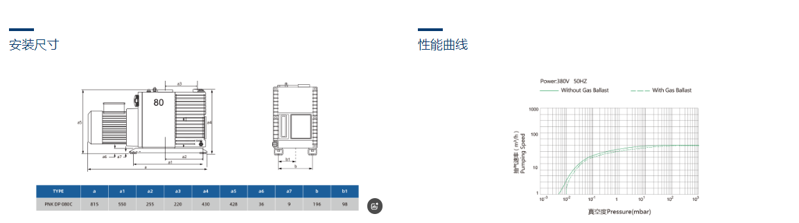 抽速 (50/60Hz): 80m³/h/96m³/h