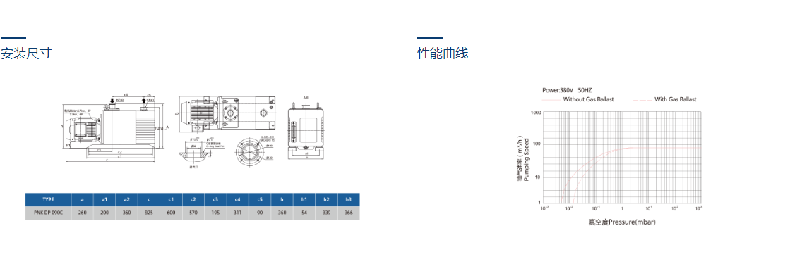 抽速 (50/60Hz): 90m³/h/108m³/h