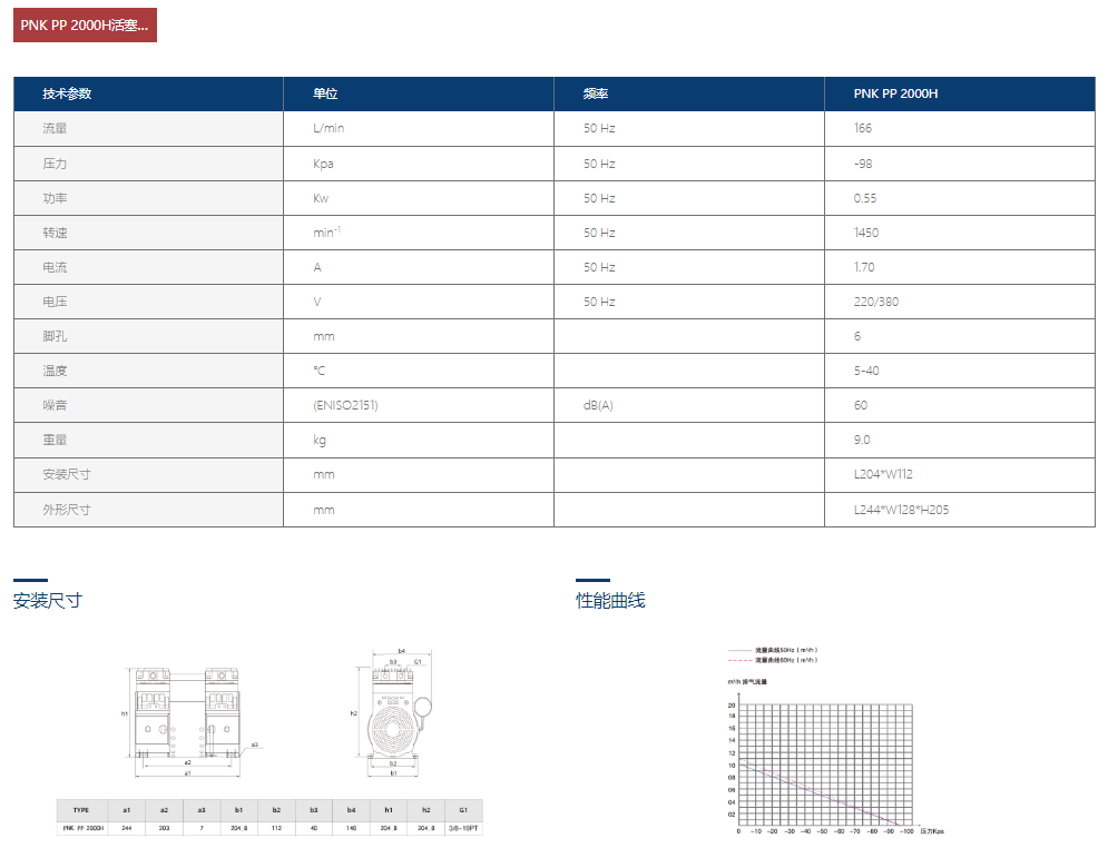 PNK PP 2000H活塞真空泵