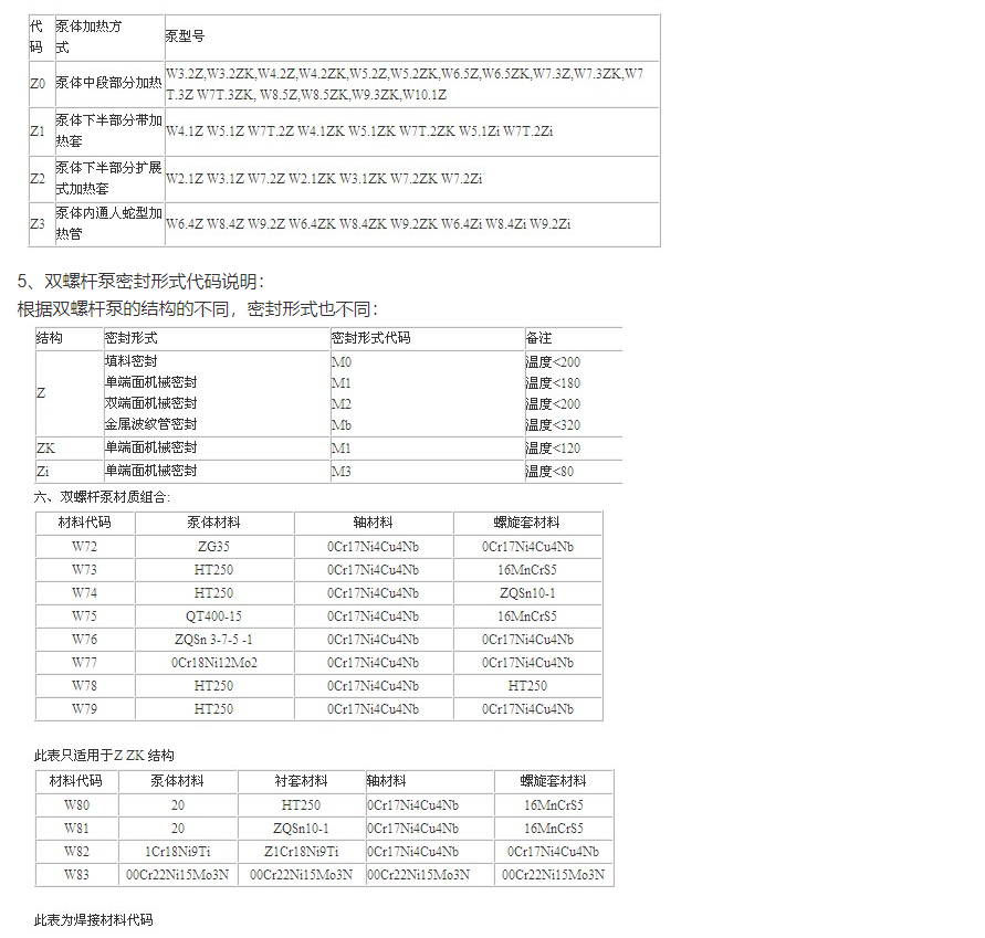 W.V系列双螺杆泵共有:Z,ZK,Zi三种主要结构形式。
