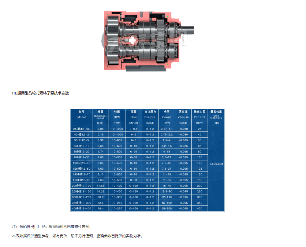 转子:高精度进口加工中心加工的凸轮转子误差极小,*的凸轮式转子将泵的进出口密封隔离,泵的真空度高达-0.095MPA。转子材质和类型可根据输送物料的特性来选择。