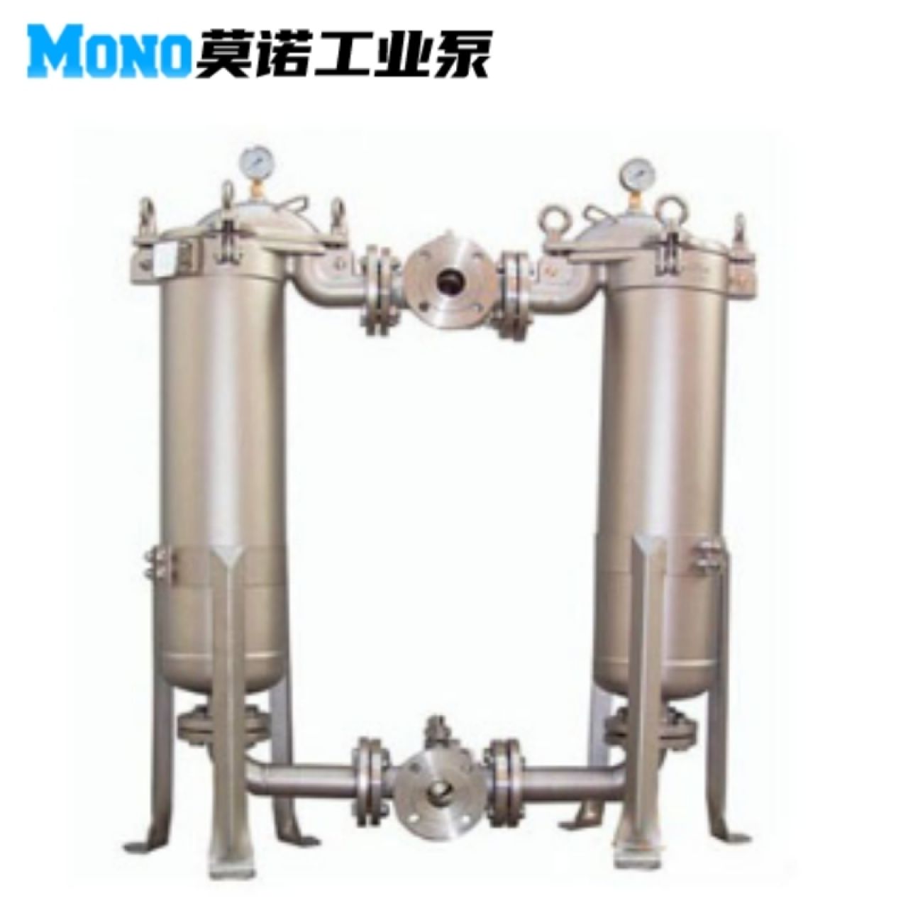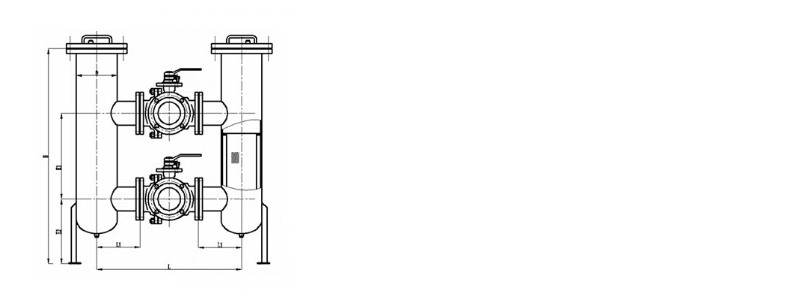 双联切换式过滤器,采用两个三通球阀,将两个单筒过滤器组装在一个机座上,清洗过滤器时不必停车,确保其连续工作。