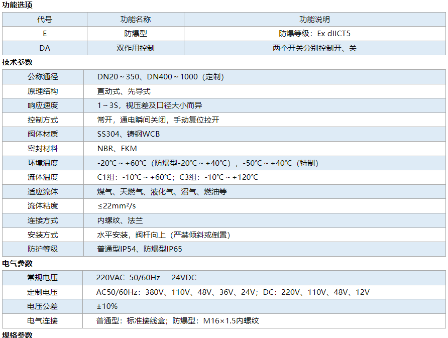 阀门特点:品质优良、安全可靠、瞬间通电、快速切断、飞蝶活塞、防腐耐磨、三维密封、严防泄漏、导向装置、避免故障。