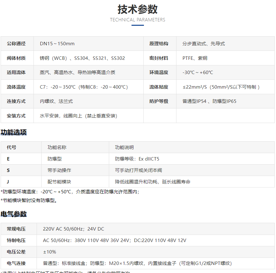 性能特点:散热结构、高温专用、特制线圈、耐温性好、频繁动作、久经考验、设计先进、超长寿命、特制密封、严防泄漏。
