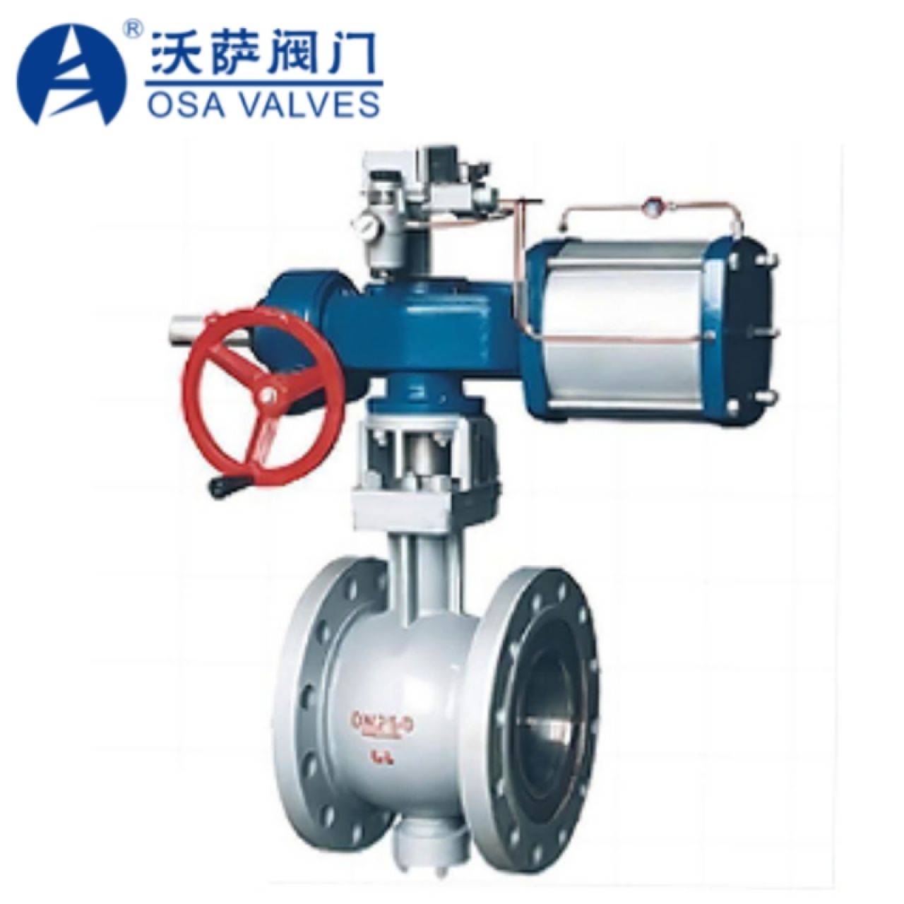 阀门特点:OSAZSSV气动V型活塞式调节球阀,是一种旋转型调节球阀,为气动单元组合仪表中的执行器,