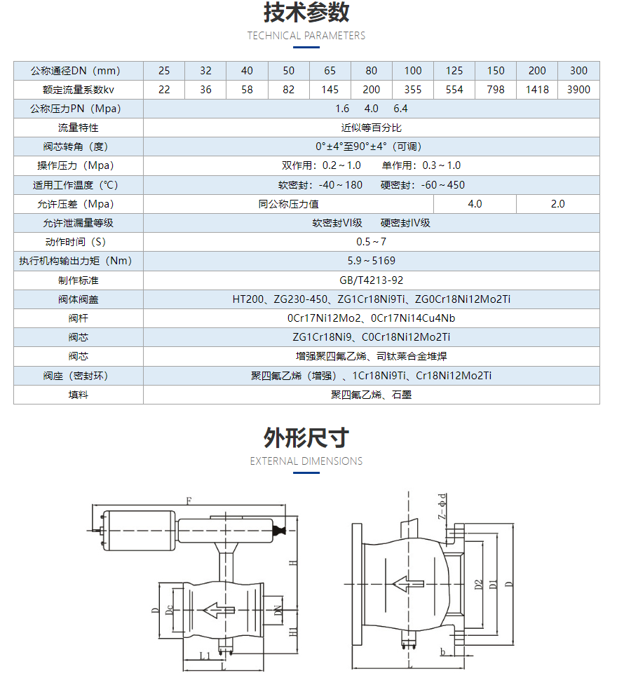 由电气阀门定位器或气动阀门定位器组合使用。球阀芯开有V型切口,与阀座相对转动产生剪切力,
