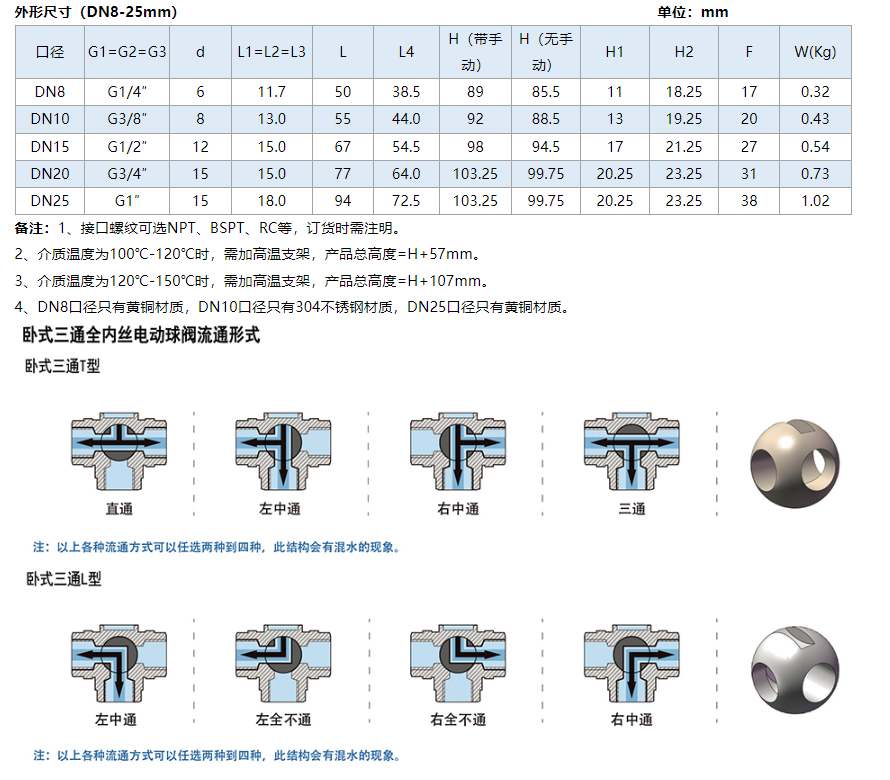 沃萨OSAWQ914/15系列微型电动三通球阀(卧式三通)