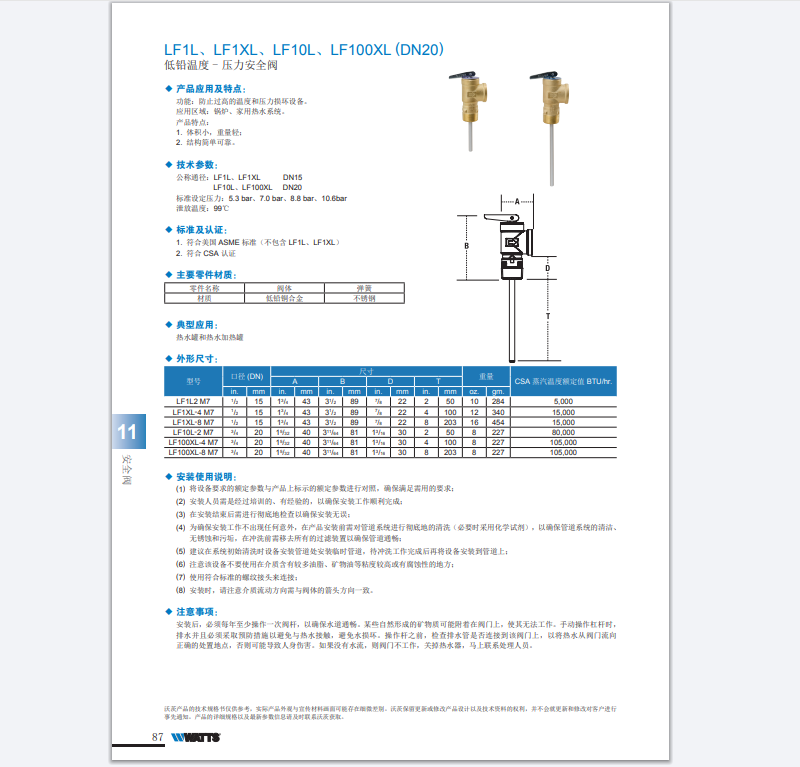 低铅温度-压力安全阀LF1L/LF1XL/LF10L/LF100XL