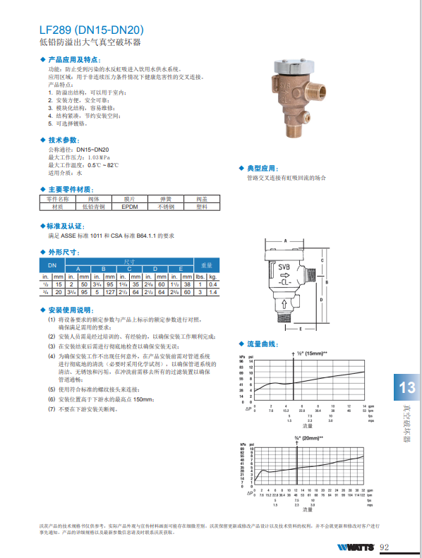 功能:防止受到污染的水反虹吸进入饮用水供水系统;应用区域:用于非连续压力条件情况下健康危害性的交叉连接