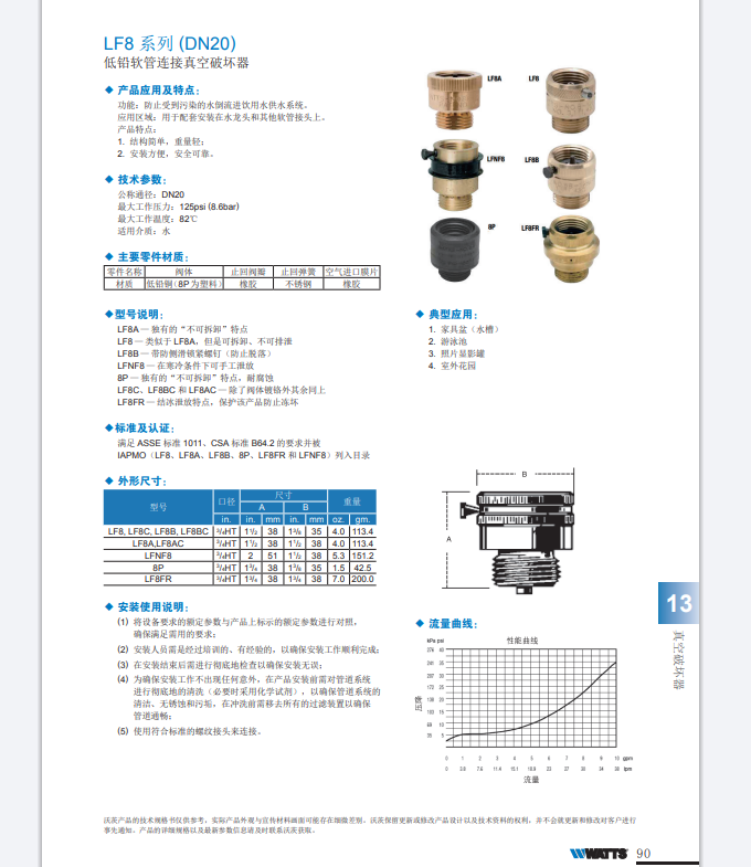 功能:防止受到污染的水倒流进饮用水供水系统;应用区域:用于配套安装在水龙头和其他软管接头上