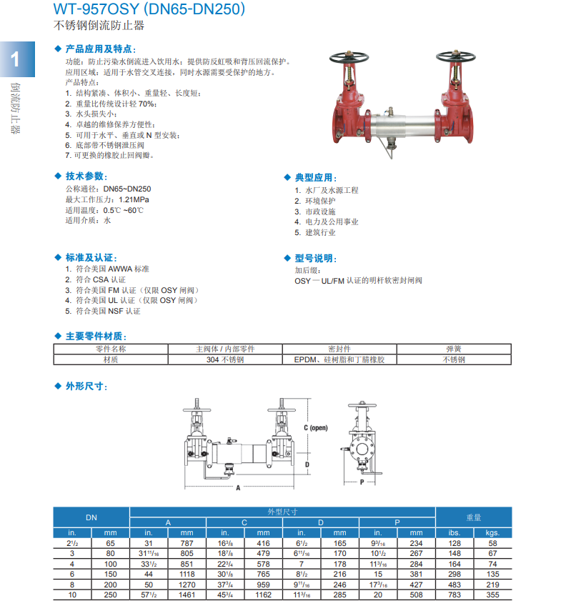 功 能:防止污染水倒流进入饮用水;提供防反虹吸和背压回流保护;应用区域:适用于对水质影响较低的场合
