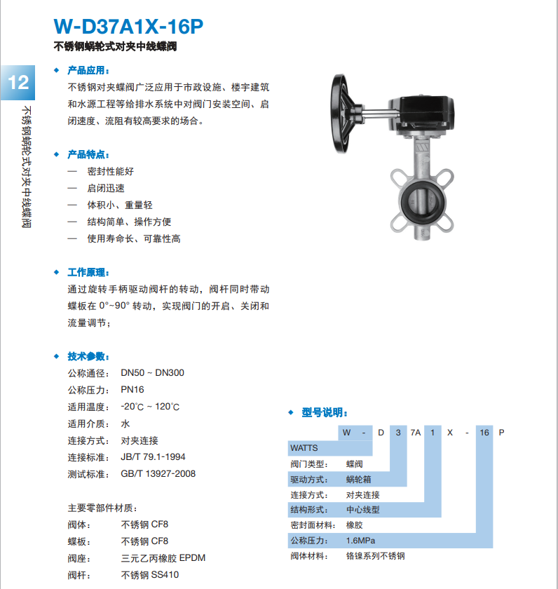 不锈钢蜗轮式对夹中线蝶阀W-D37A1X-16P