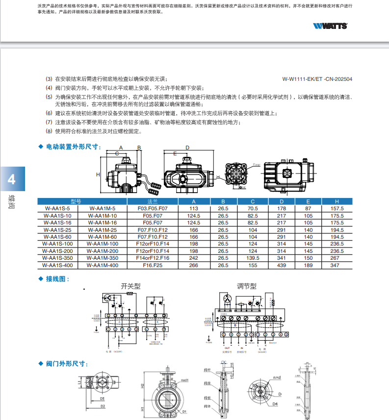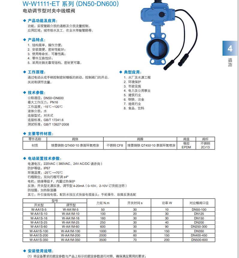 电动开关型对夹中线蝶阀:电动调节型对夹中线蝶阀W-W1111-EK/W-W1111-ET