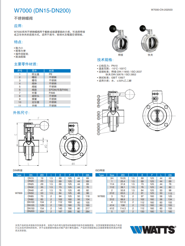 W7000系列不锈钢蝶阀用于截断或接通管路的介质,可选择焊接或卫生快夹的连接方式,适用于液冷、给排水及暖通空调领域。