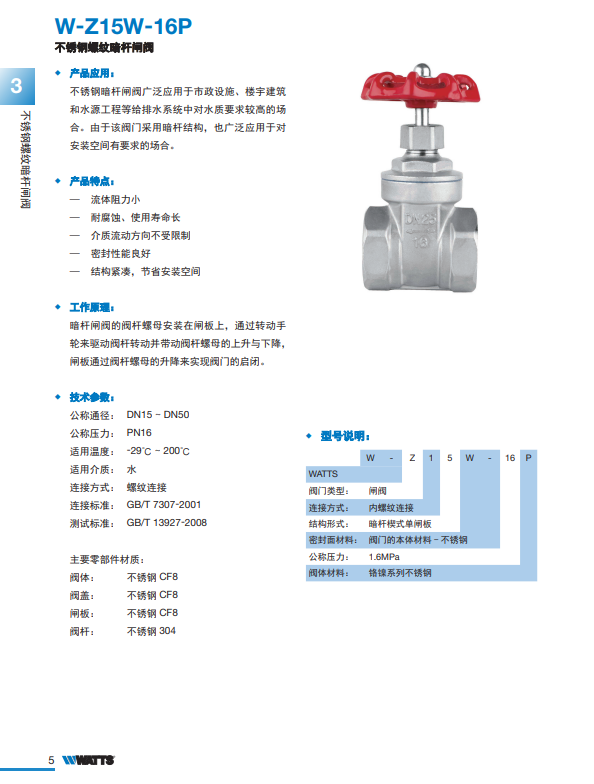 不锈钢螺纹暗杆闸阀W-Z15W-16P