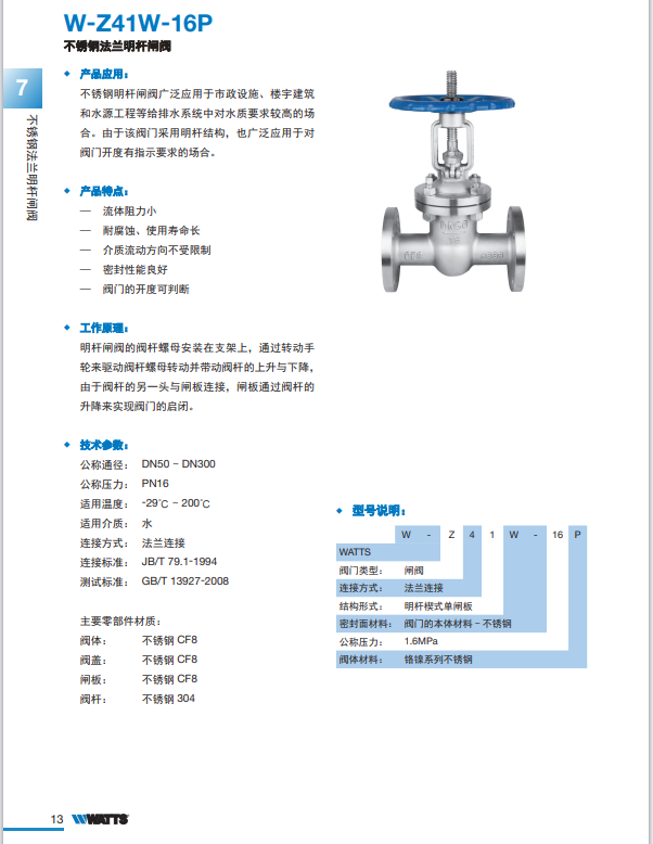 不锈钢法兰明杆闸阀W-Z41W-16P