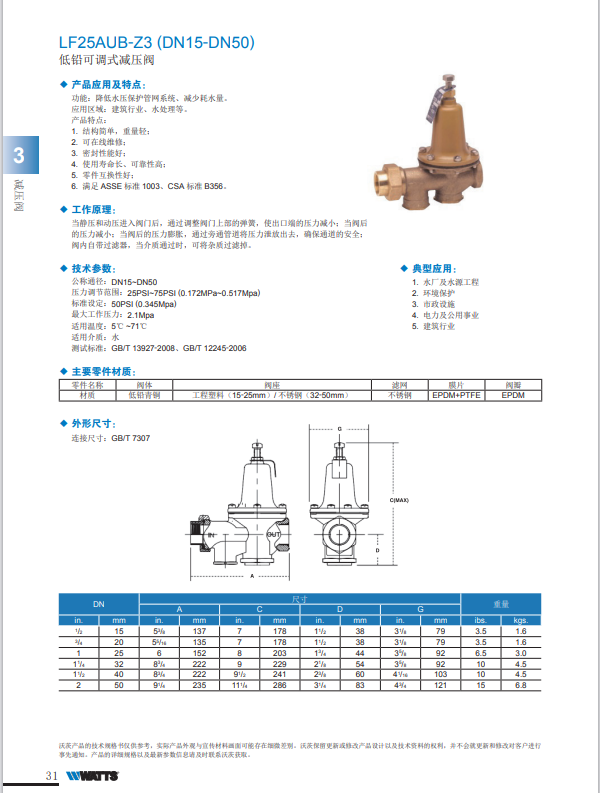 零件互换性好;满足ASSE标准1003、CSA标准B356