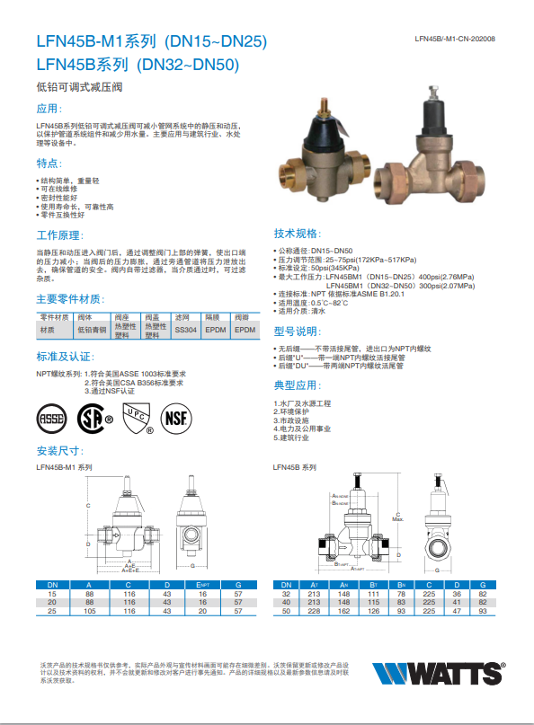 LFN45B系列低铅可调式减压阀可减小管网系统中的静压和动压,以保护管道系统组件和减少用水量。