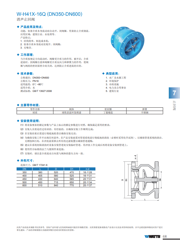 依靠介质本身流动而自动开、闭阀瓣,用来防止介质倒流; 应用区域:建筑行业、水处理等;
