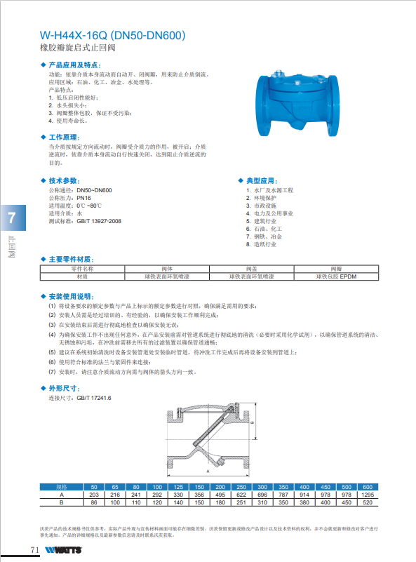 橡胶瓣旋启式止回阀W-H44X-16Q