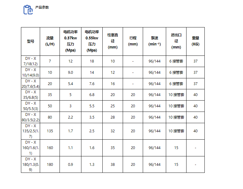 DY-X 型液压隔膜式计量泵,采用先进液压系统设计,运行安全无泄漏。计量精度可达 ±1%,工作压力高至 30MPa,