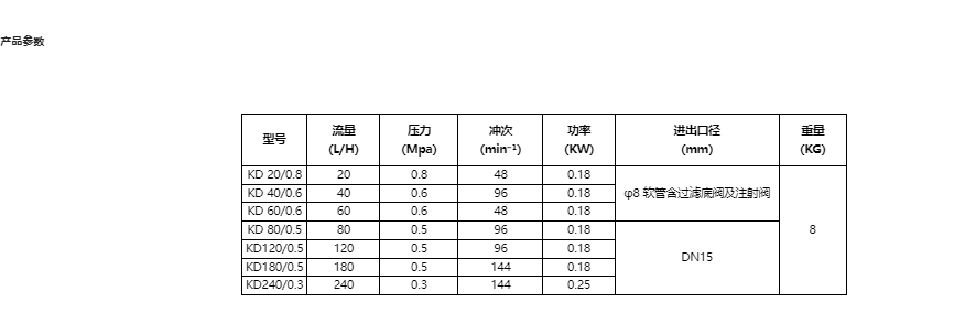 KD系列产品,是由电机驱动的机械隔膜式计量泵,适用于底压力场合的流体精确计量,有多种材质泵头可选,