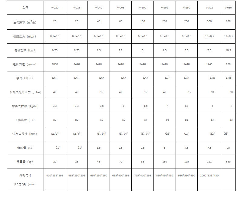 可靠经济用于抽除普通空气或少量可凝性气体应用于粗-低真空范围的广泛工业用途。