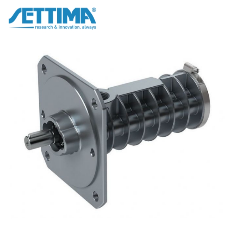 在螺杆旋转过程中,主螺杆形成空腔,它容纳水流并平稳地将水流按轴向从入口排出至出口端口。"